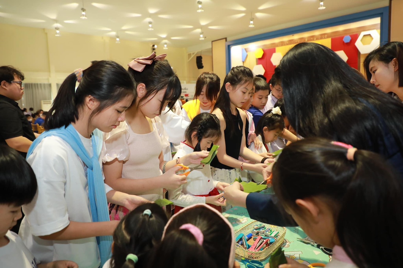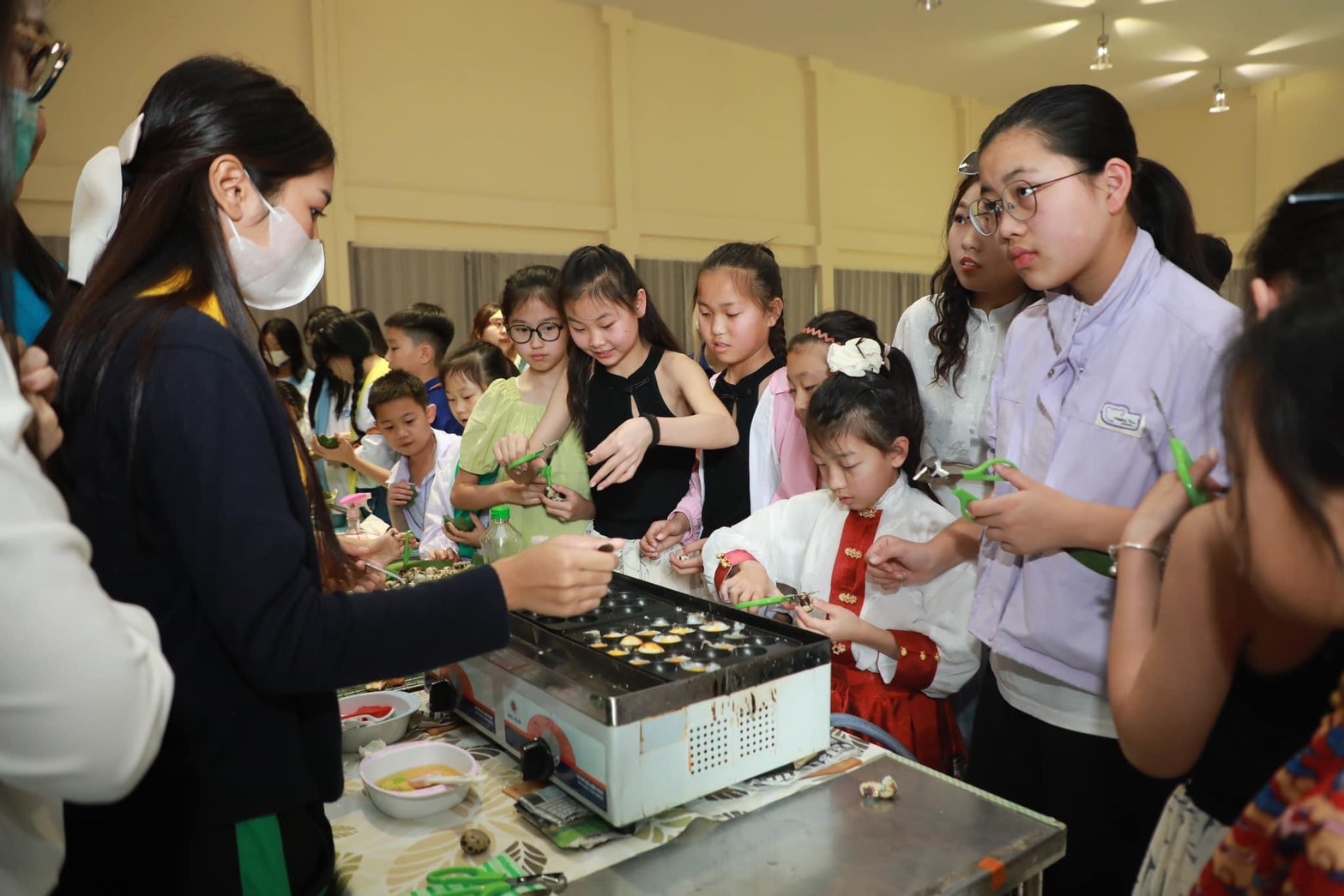 และมีการจัดบูธสอนทำกระทงจากใบตองให้กับคณะจากจีนโดย ทั้งผู้ปกครองและนักเรียนจากประเทศจีนให้ความสนใจเป็นอย่างมากและยังได้ทำไข่ครกใส่กระทงที่ตนเองได้ทำขึ้นอีกด้วยค่ะ ปิดท้ายด้วยการเยี่ยมชมการเรียนการสอนและสนุกสนานกับเยี่ยมเยียนพี่สัตว์ต่างๆที่ศูนย์การเรียนรู้เศรษฐกิจพอเพียงที่ด้านหลังโรงเรียนสาธิตกรุงเทพธนบุรีโดยได้ให้หญ้า ผักบุ้งกับพี่วัว พี่ควาย พี่ม้า พี่เต่า พี่แกะ และให้อาหารปลาอีกด้วย