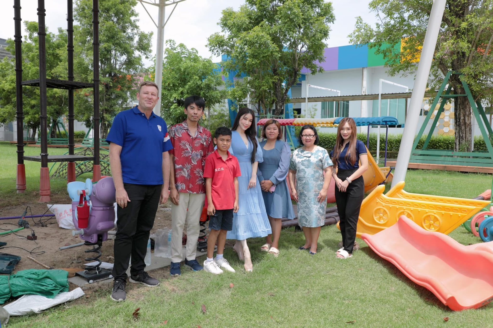 “โครงการแบ่งปันความสุข“ ให้น้อง ๆ ในจังหวัดร้อยเอ็ด ซึ่งฝ่ายอนุบาล โรงเรียนสาธิตกรุงเทพธนบุรีได้มีแผนการปรับปรุงเครื่องเล่นสนาม วันนี้จึงได้ทำการส่งต่อเครื่องเล่นสนามชุดเก่าขนาด 10x5x7 เมตรให้กับน้อง ๆ โรงเรียนบ้านนางเตี้ยไศลทอง จังหวัดร้อยเอ็ดค่ะ โดยมีตัวแทนคุณครูและนักเรียนของโรงเรียนบ้านนางเตี้ยไศลทองมาเป็นตัวแทนรับมอบค่ะ