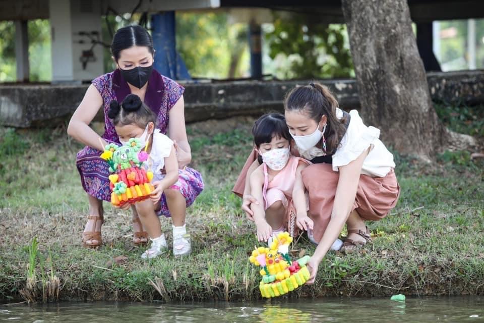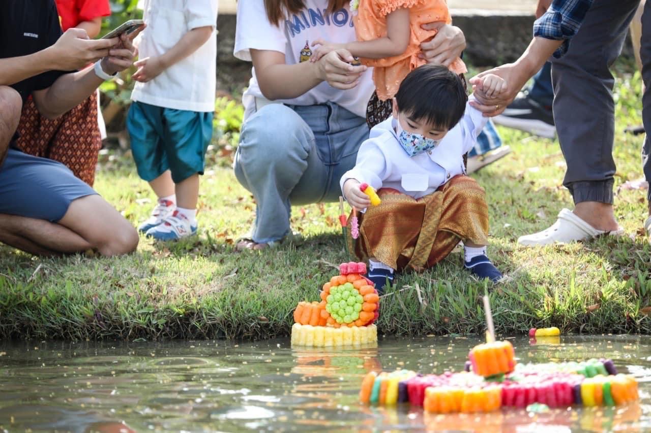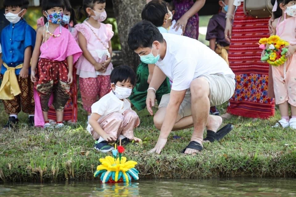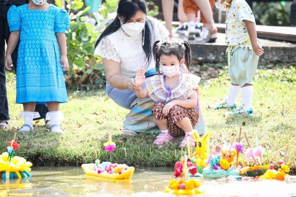 น้อง ๆ อนุบาลได้ช่วยกันประดิษฐ์กระทงรักษ์สิ่งแวดล้อมโดยประดิษฐ์จากอาหารปลาซึ่งจะสามารถย่อยสลายและยังเป็นอาหารให้ปลาที่อยู่ในน้ำได้อีกด้วย อีกทั้งร่วมกันแต่งกายด้วยชุดไทยหรือชุดผ้าไทยเพื่อสืบสานขนบธรรมเนียมอันสวยงามของคนไทย เด็กๆทุกคนได้ไปลอยกระทงที่ประดิษฐ์เองกัน ณ ศูนย์เศรษฐกิจพอเพียงโรงเรียนสาธิตกรุงเทพธนบุรี ลอยกระทงกันเสร็จแล้วก็ได้แวะทักทายพี่เผือกและครอบครัว (ควายเผือก) รวมถึงพี่ วัว พี่ม้า พี่แกะ พี่ไก่กันอีกด้วย