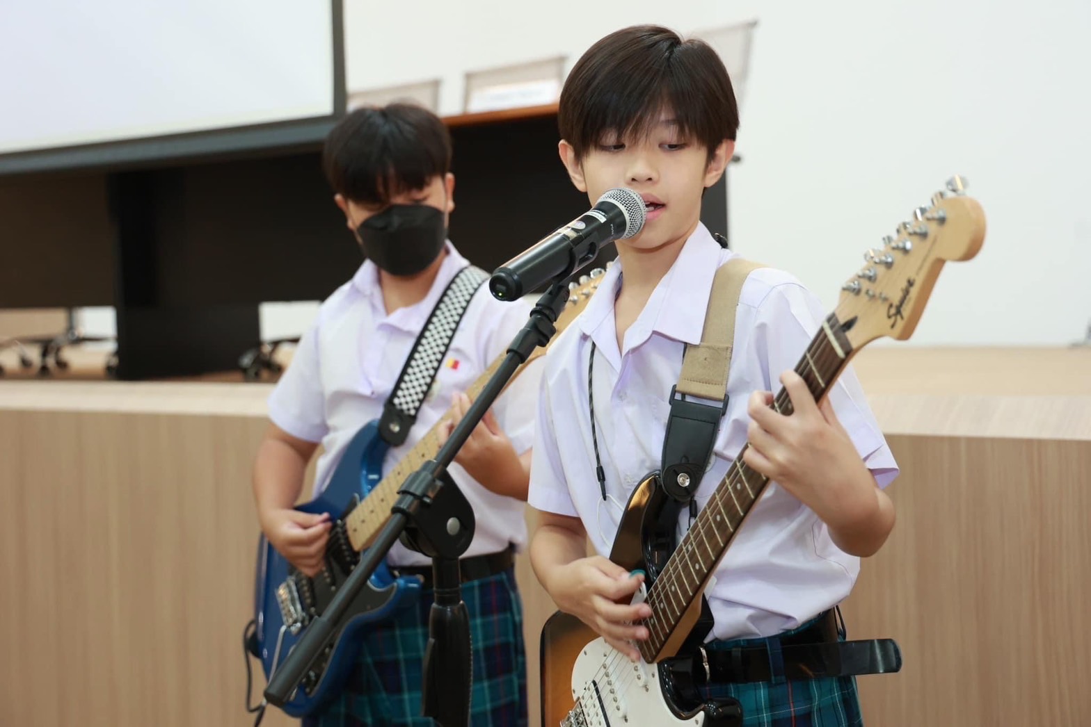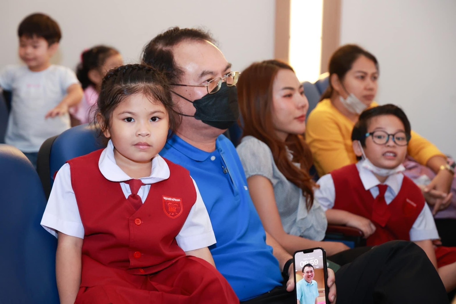 จากนั้น มีการพูด Welcome Speech จากตัวแทนนักเรียนระดับอนุบาล น้องอัญชัน ตัวแทนนักเรียนประถม น้องดียา และน้องจีตั้น ตัวแทนนักเรียนมัธยม น้องลดา น้องเฟิร์สและน้องอี๊หลิน ต้อนรับผู้ปกครอง
