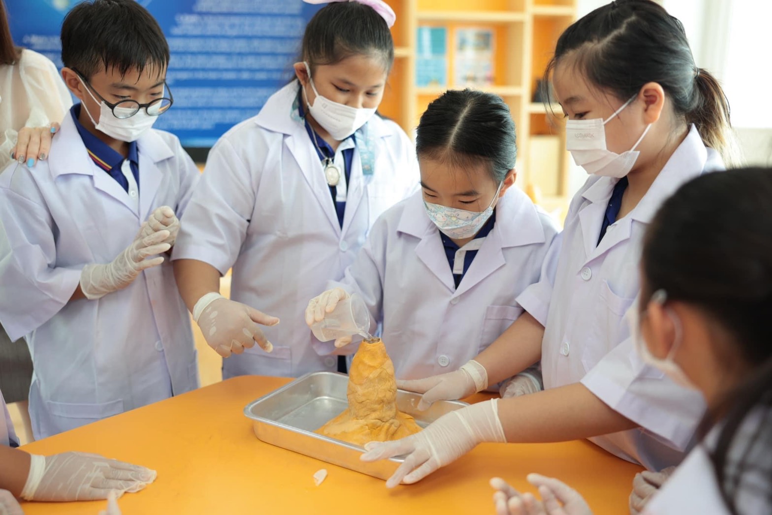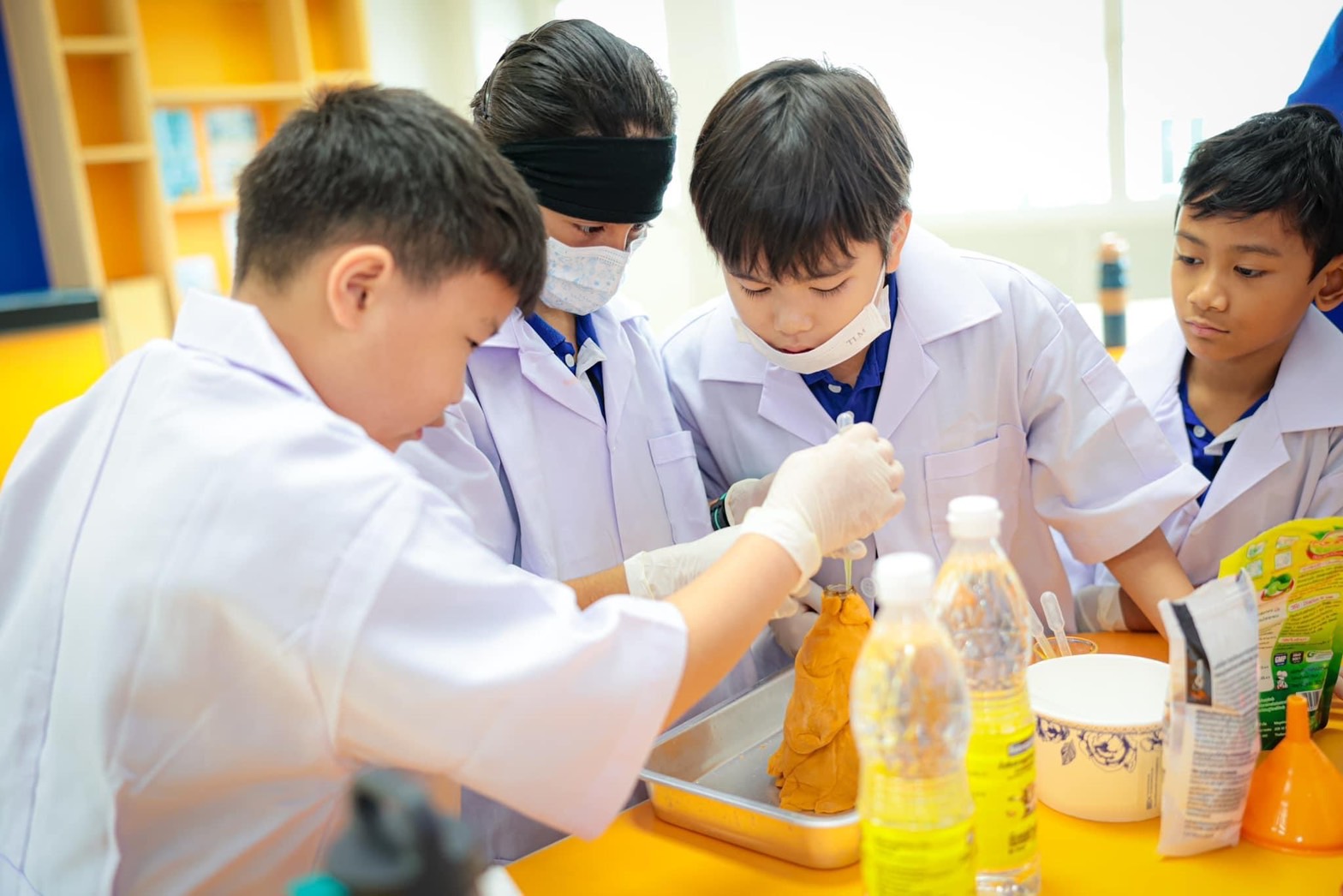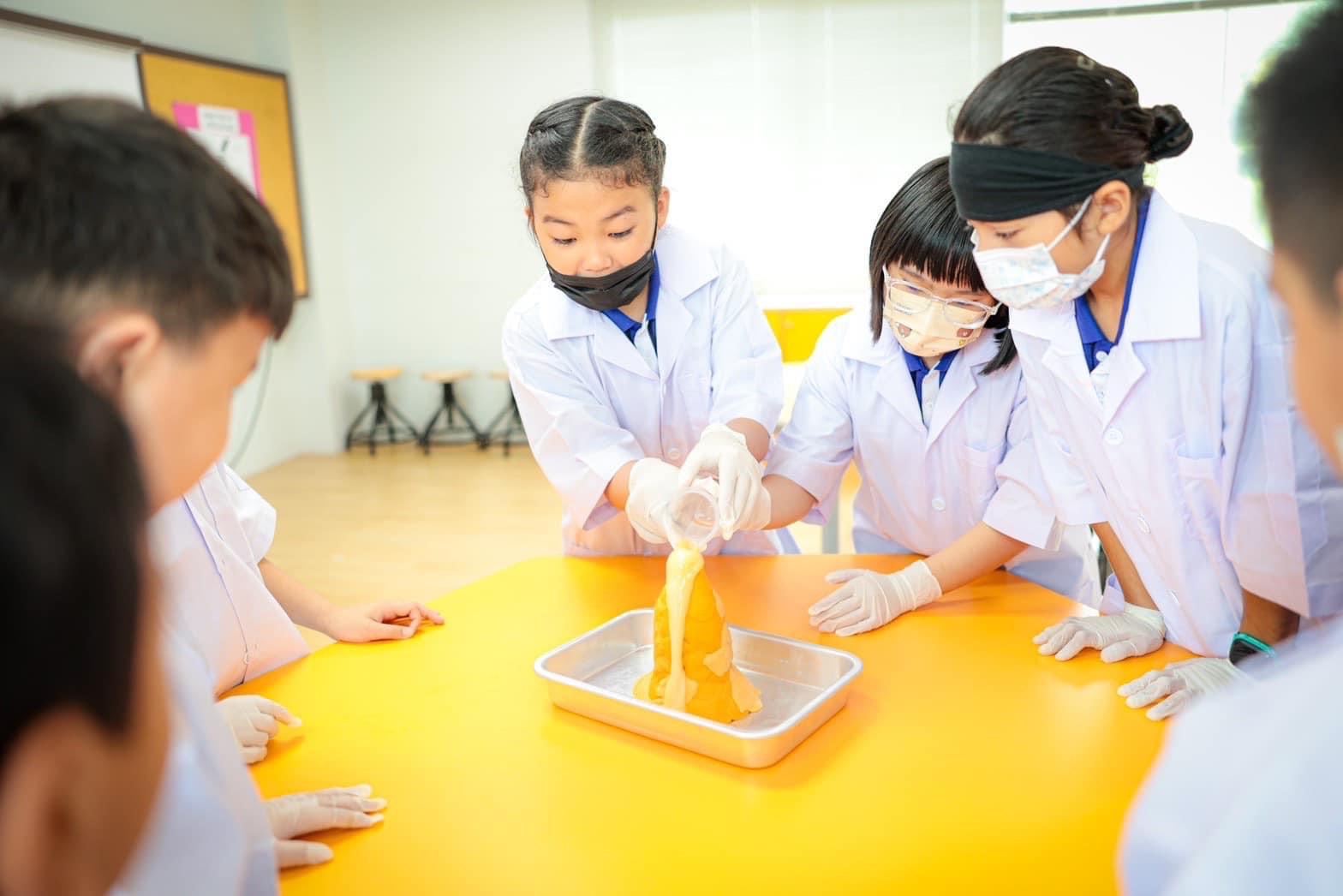 แอดมินขอนำภาพบรรยากาศห้อง Science Lab น่ารัก ๆ ของนักวิทยาศาสตร์รุ่นจิ๋วนักเรียนระดับชั้น EP.4 ที่ได้ทำการทดลองเรื่อง Volcano with Baking Soda and Vinegar โดยเป็นการทดลองทำภูเขาไฟเพื่อดูปฏิกิริยาที่เกิดขึ้นนั้นแต่ละกลุ่มมีปริมาณและความเร็วของลาวาที่ไหลออกมาไม่เท่ากัน