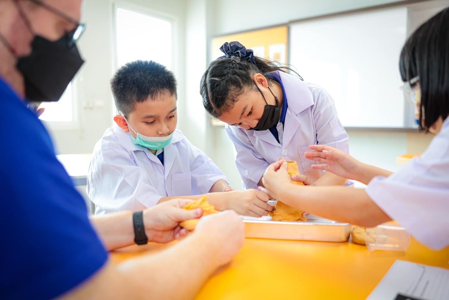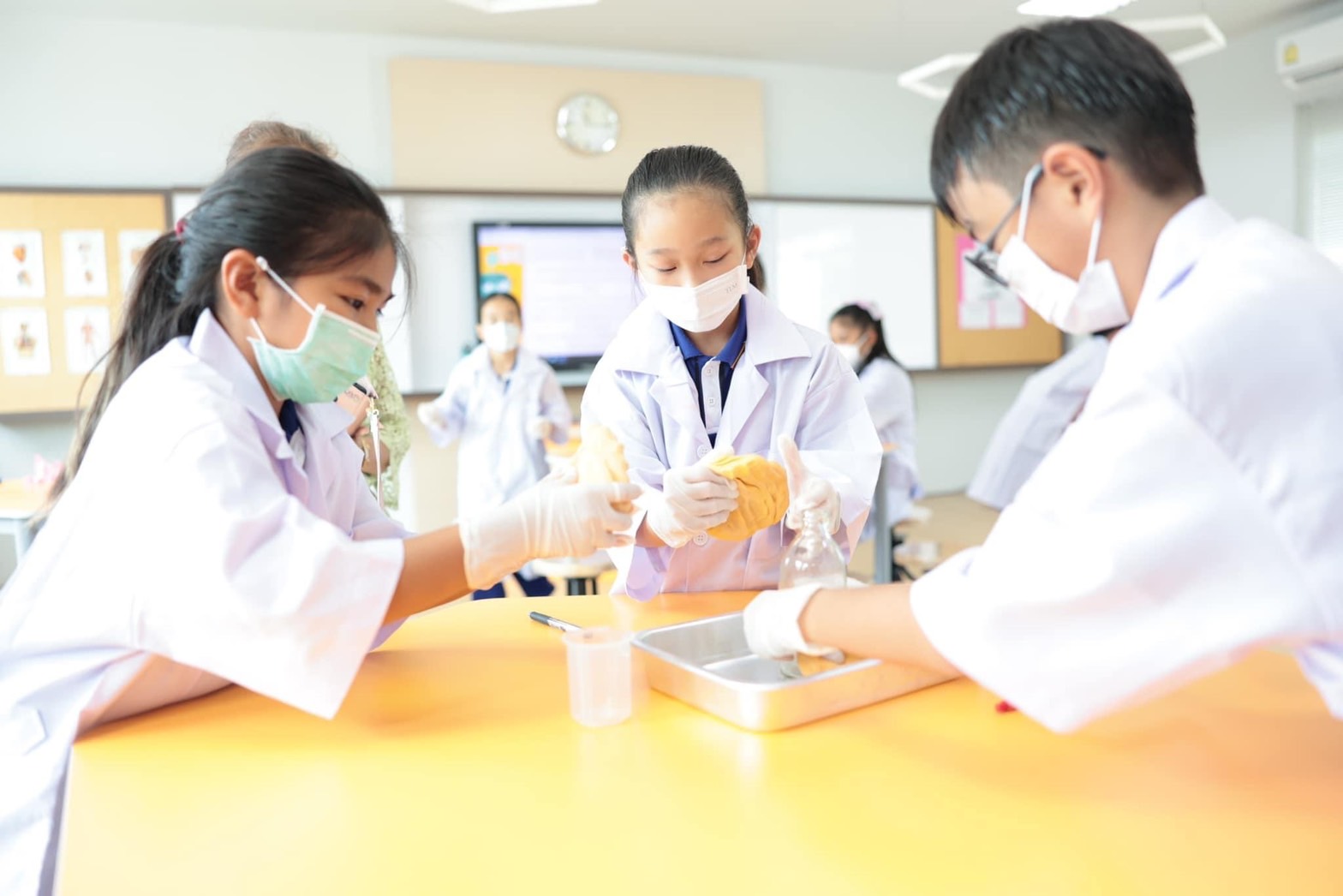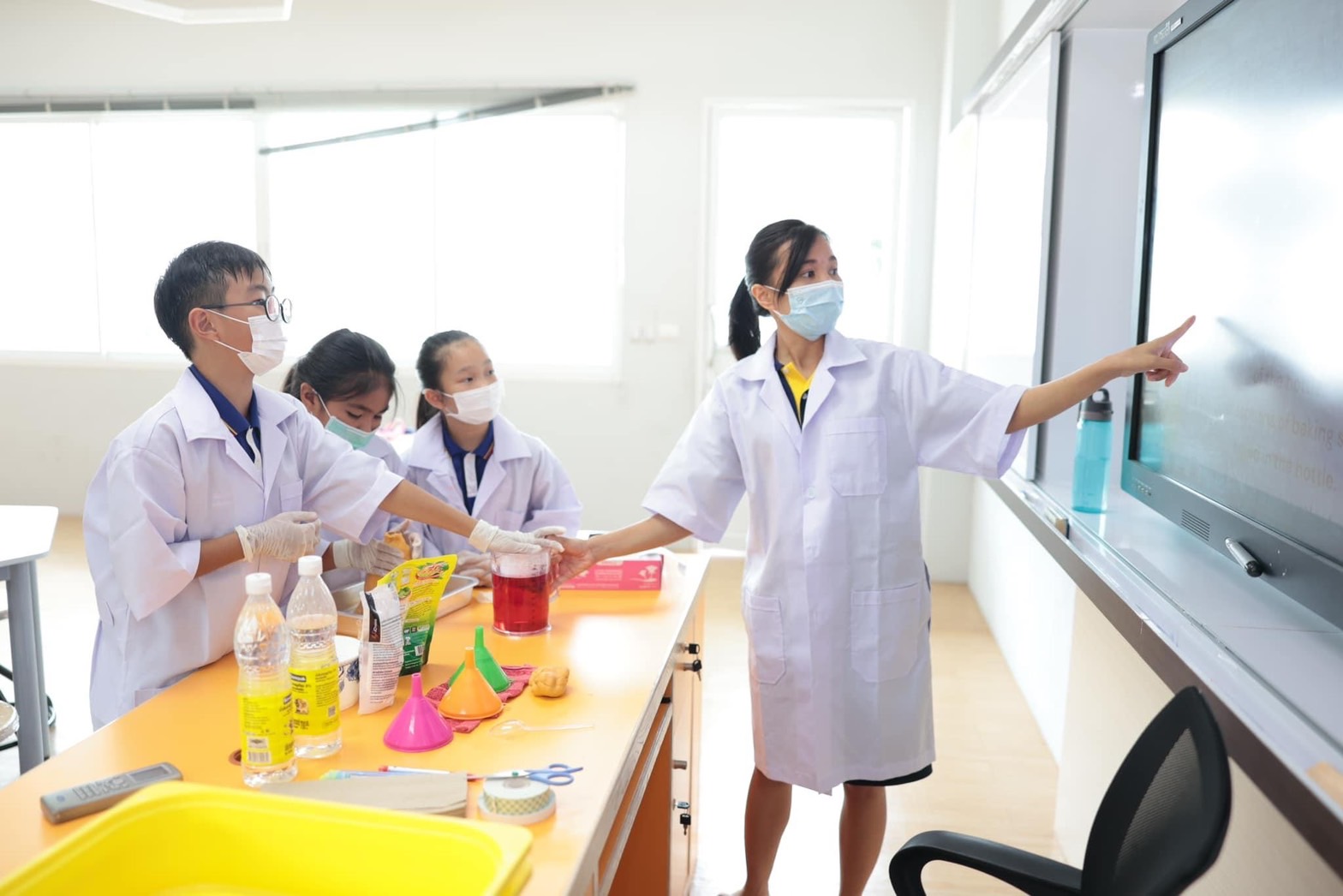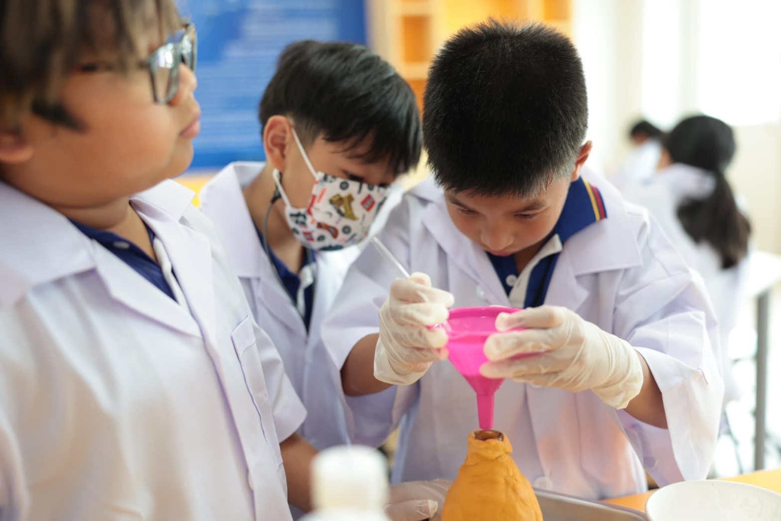 แอดมินขอนำภาพบรรยากาศห้อง Science Lab น่ารัก ๆ ของนักวิทยาศาสตร์รุ่นจิ๋วนักเรียนระดับชั้น EP.4 ที่ได้ทำการทดลองเรื่อง Volcano with Baking Soda and Vinegar โดยเป็นการทดลองทำภูเขาไฟเพื่อดูปฏิกิริยาที่เกิดขึ้นนั้นแต่ละกลุ่มมีปริมาณและความเร็วของลาวาที่ไหลออกมาไม่เท่ากัน