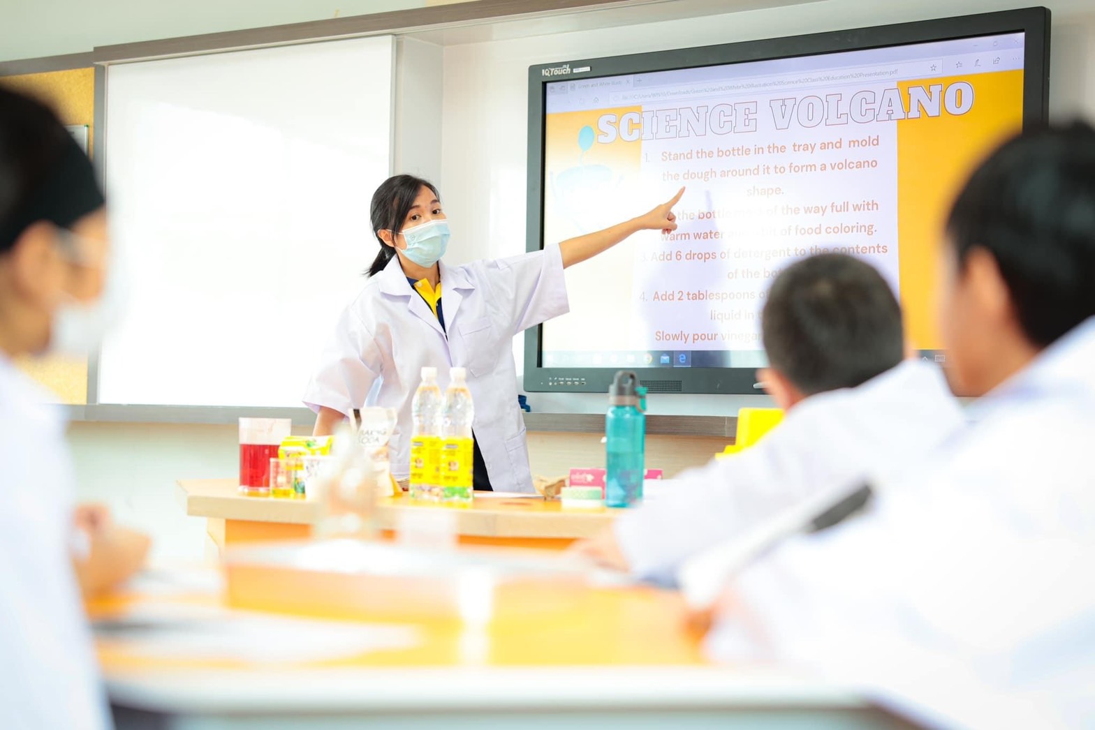 โดยนักเรียนได้ข้อสังเกตว่า กลุ่มที่ใส่น้ำยาล้างจานลงไปเยอะหน่อย จะทำปฎิกิริยาให้ลาวาไหลช้าและมีฟองเยอะเมื่อเทเบคกิ้งโซดาลงไป และหากใส่น้ำส้มสายชูน้อยเกินไป ปริมาณ ลาวาที่ไหลออกมาจากภูเขาไฟจะค่อนข้างน้อย ต้องใส่น้ำส้มสายชูเกินครึ่งขวดไปจึงจะมีปริมาณลาวาที่พวยพุ่งออกมาค่ะ