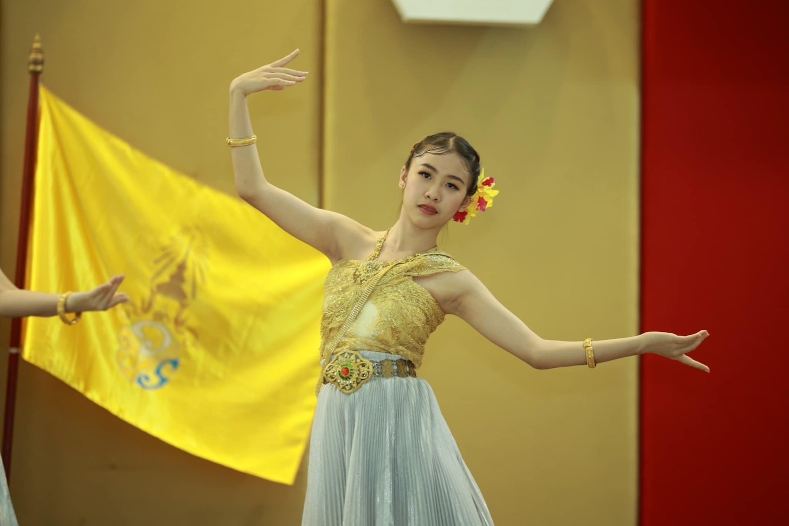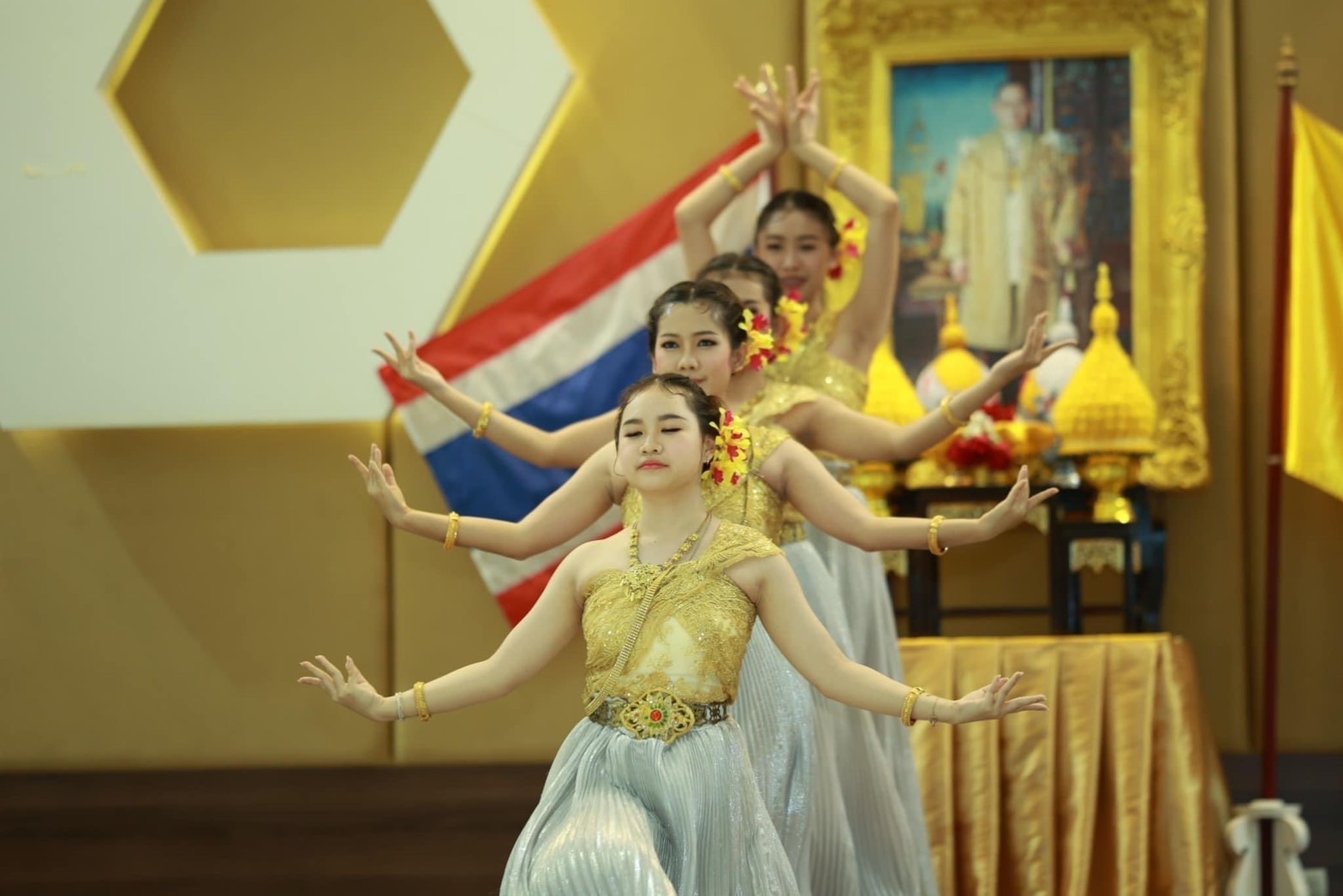 การแสดงบนเวทีมีการแสดงจินตลีลาประกอบเพลง “พระราชาผู้ทรงธรรม”