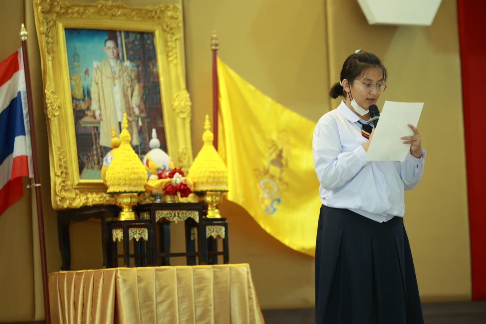 โดยนักเรียนทุกคนได้ร่วมกันร้องเพลงสรรเสริญพระบารมี