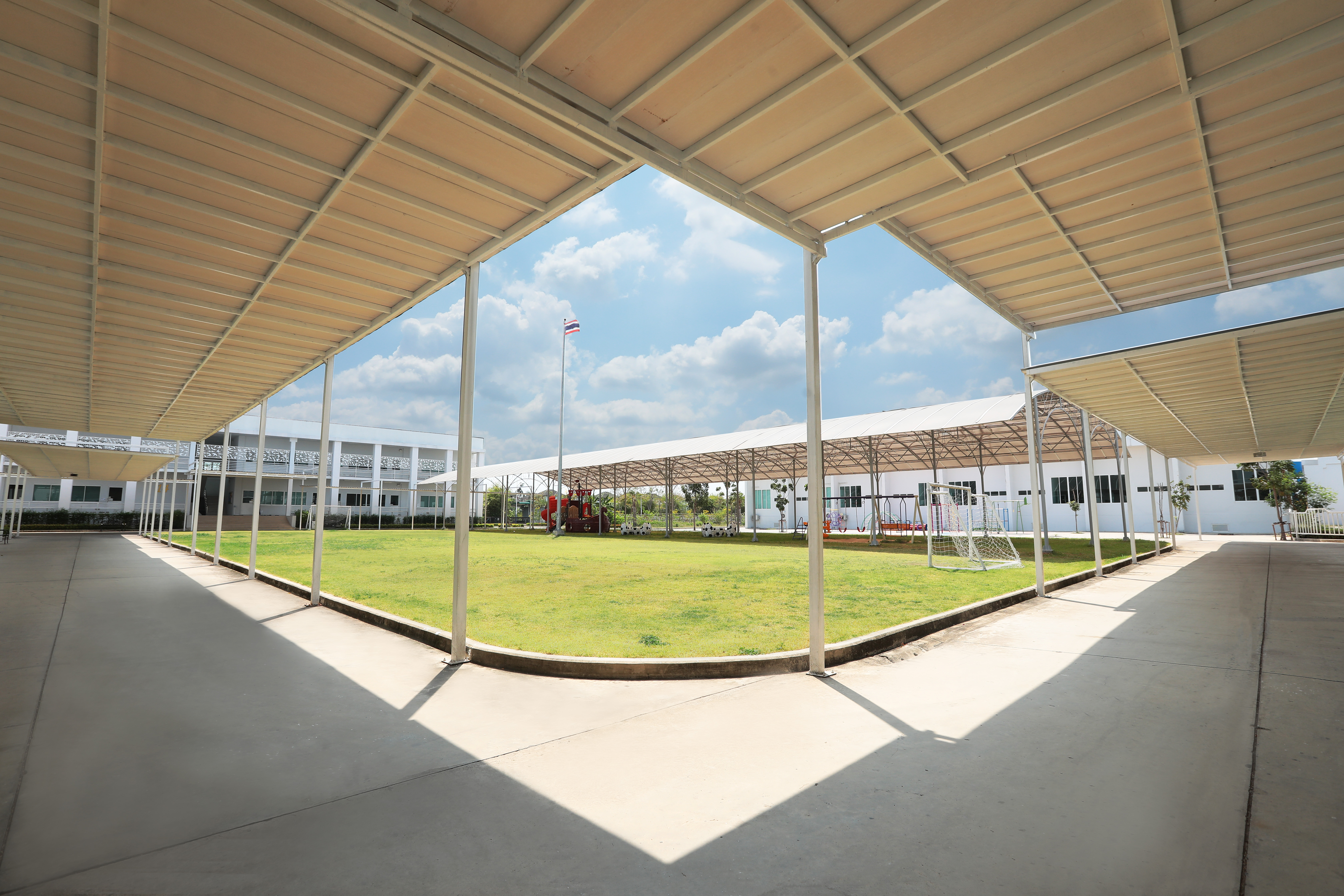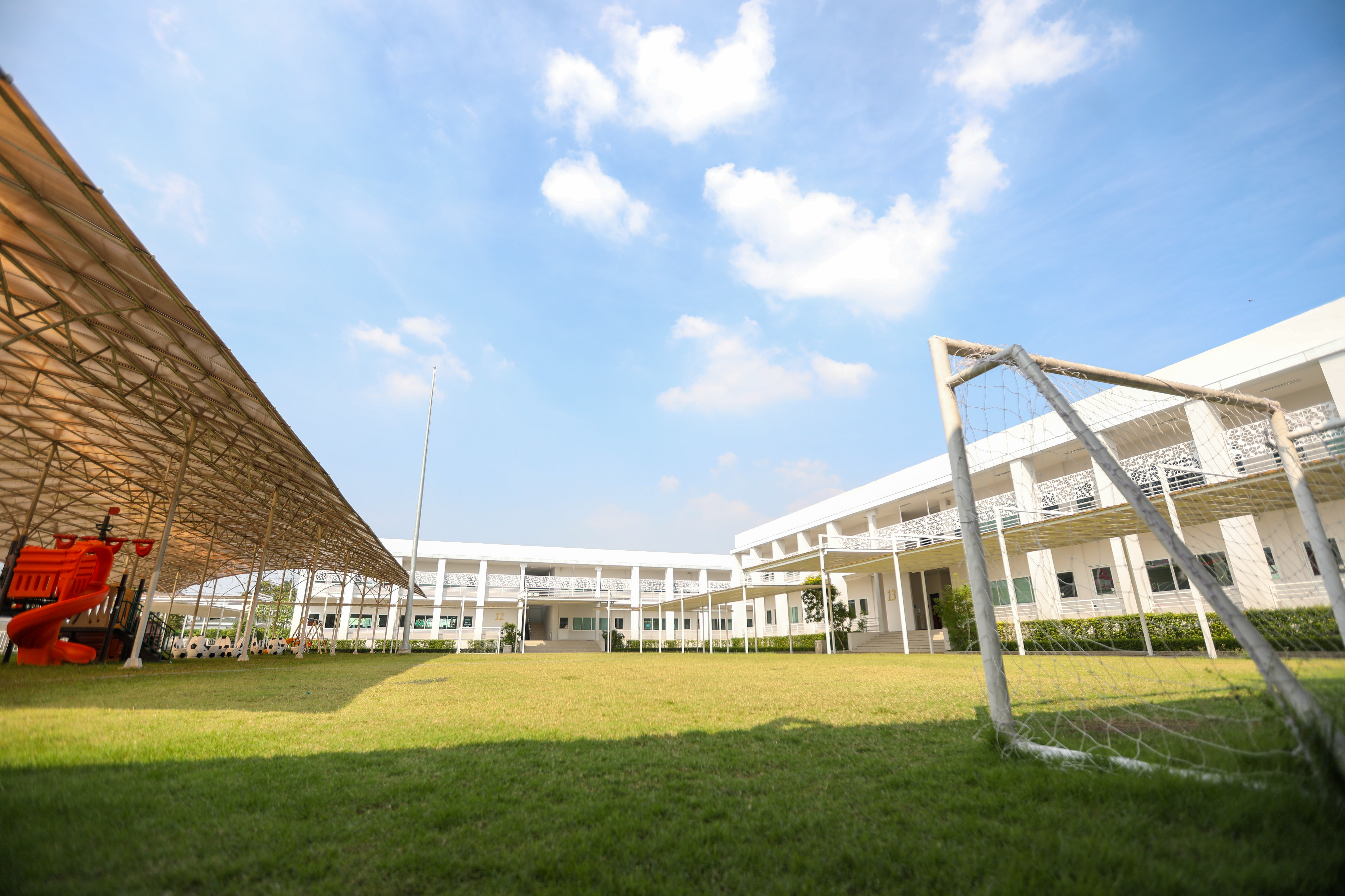 บนพื้นที่กว่า 81 ไร่ Facilities ต่างๆ ถูกจัดสรรไว้เพื่ออำนวยความสะดวกแก่นักเรียนและผู้ปกครองได้อย่างเป็นสัดส่วน เราออกแบบโครงสร้างอาคารเป็นแนวราบเพื่อความปลอดภัยของนักเรียน โดยอาคารเรียนชั้นอนุบาลจะเป็นอาคารชั้นเดียว ที่ออกแบบให้มีเพดานที่สูงโปร่งเพื่ออากาศถ่ายเทได้ดี ส่วนอาคารเรียนตั้งแต่ประถม และมัธยมจะมี 2 ชั้น นอกจากนี้เรื่องสิ่งแวดล้อมเป็นอีกเรื่องที่โรงเรียนให้ความสำคัญ โดยจะมีพื้นที่สีเขียว สนามหญ้า รวมถึงมุมพักผ่อนต่างๆ ให้นักเรียนได้ผ่อนคลาย อีกทั้งยังมีบริการรถไฟวิ่งรอบโรงเรียนเพื่อบริการนักเรียนและผู้ปกครองเมื่อมาที่โรงเรียนอีกด้วย